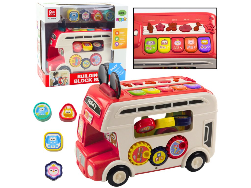 - Interaktivní edukační autobus třidič červený je fantastická hračka, která spojuje vzdělání a zábavu, rozvíjejíc u dítěte manuální zručnost, koordinaci zraku a pohybů a poznávací schopnosti