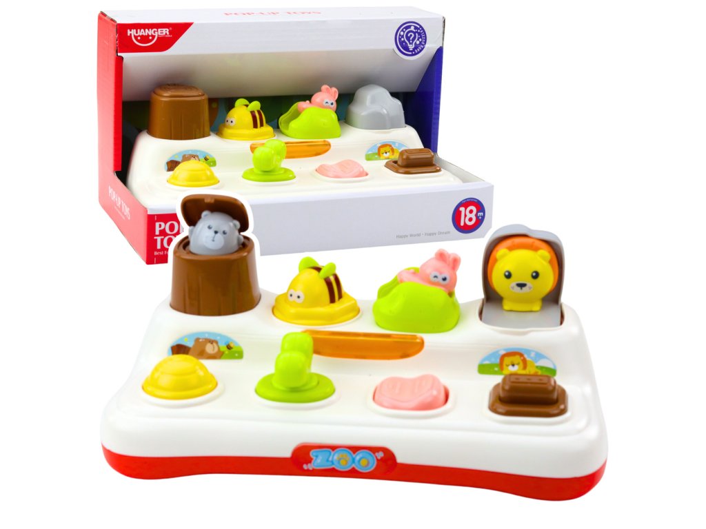 Interaktivní edukační hračka Pop-Up Světla Zvířátka je unikátní volba pro nejmenší děti od 18 měsíců věku. Tato interaktivní hračka ve formě barevného panelu se skrytými zvířátky umožňuje učit se formou hry, podporuje rozvoj jemné motoriky a logického myšlení. Na jejím povrchu se nachází různé prvky: přepínač, otočné kolečko, posuvník a tlačítka – každý z nich aktivuje jiné okénko, ze kterého náhle „vyskočí“ roztomilé zvířátko. Mechanismus Pop-Up přináší dítku mnoho radosti a zároveň ho učí rozumět vztahu příčina-následek – dítě vidí, že vykonaný úkon vyvolává konkrétní reakci.