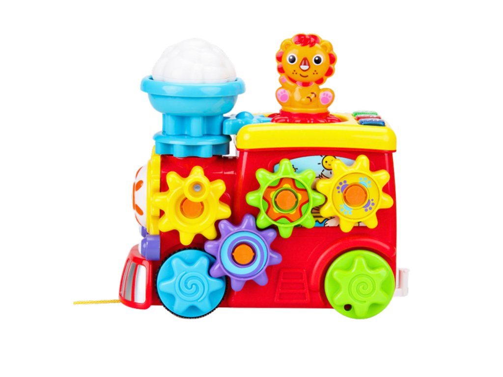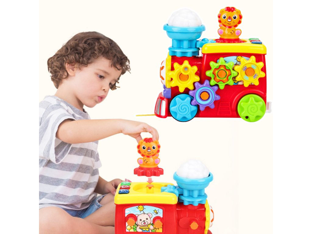 - Interaktivní hudební lokomotiva s ozubenými koly, světly a zvuky Tato barevná a interaktivní hudební lokomotiva je vynikající vzdělávací hračka pro děti, která spojuje funkci vozidla s množstvím senzorických podnětů