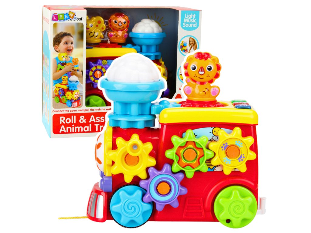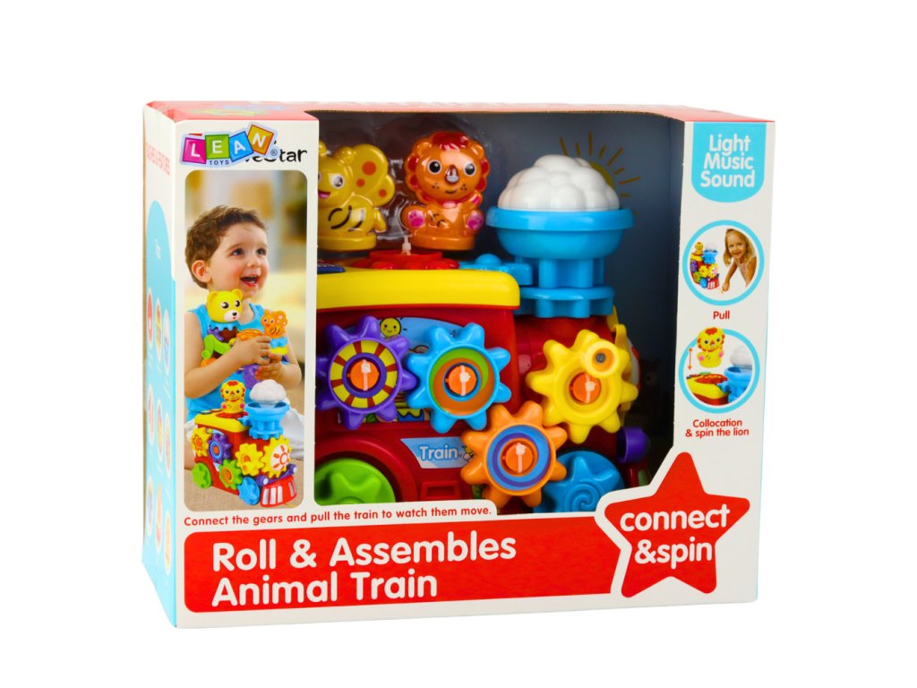 Lokomotiva má otáčecí ozubená kola, která dítě může uvádět do pohybu, což podporuje rozvoj přesných pohybů rukou a učí základním mechanickým závislostem Hračka je vybavena světelnými a zvukovými efekty, které se aktivují pomocí tlačítek a stimulují sluchový a zrakový smysl dítěte