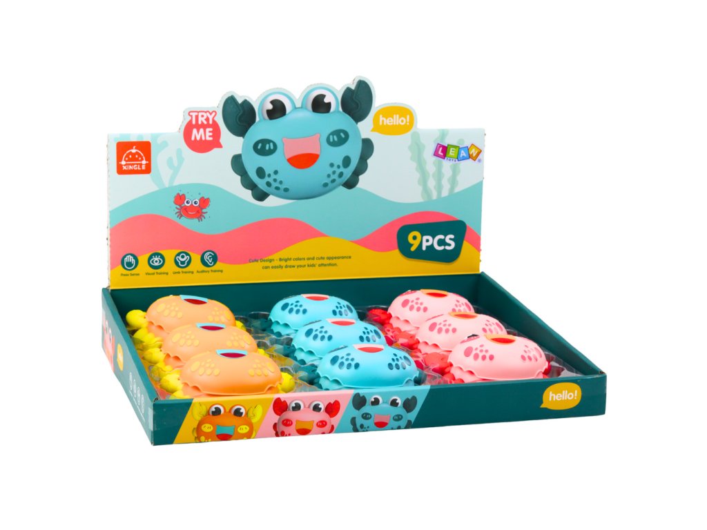 - Po stlačení horní části krunýře se krab začne pohybovat vpřed, což přináší dětem mnoho radosti a povzbuzuje je k aktivní zábavě