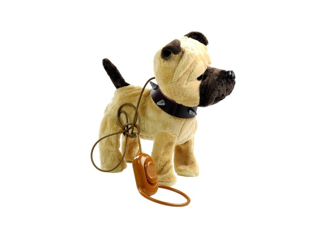 - Béžový pes na vodítku je vyroben z měkkého a netoxického