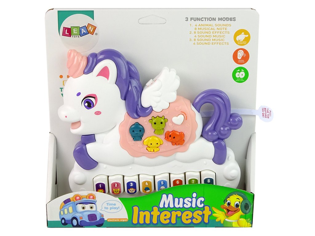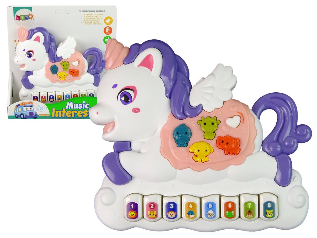 Interaktivní Piáno Jednorožec Zvuky Zvířátek Melodie Bílý