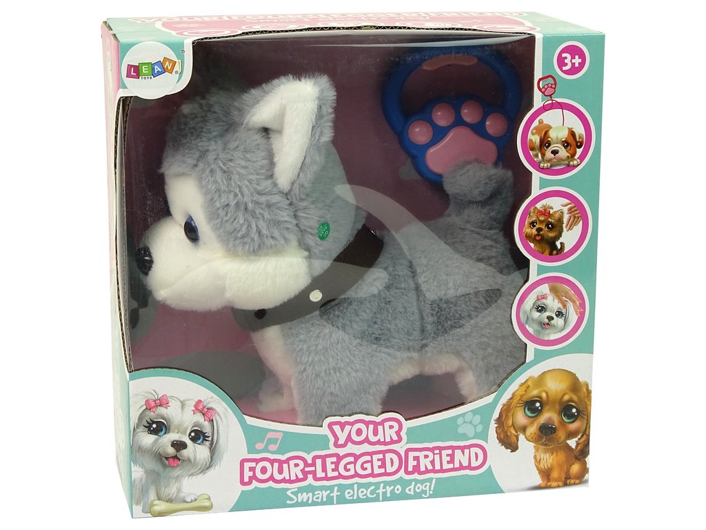 Interaktivní Plyšový Pes Husky Edukační Vodítko Písničky Chodí