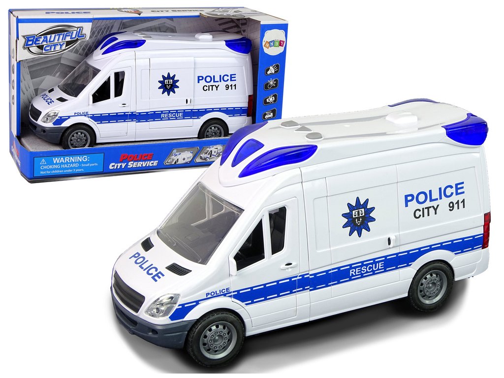 Představujeme Interaktivní Policejní Auto se světelnými a zvukovými efekty, které učaruje každého malého řidiče policejních jednotek. Tento policejní vůz je vyroben výhradně z plastu v barvách typických pro policejní vozidla. Díky natahovacímu mechanismu na předních kolech umí auto samostatně jezdit. Zvukové a světelné efekty se spouštějí pomocí tlačítek umístěných na střeše.
