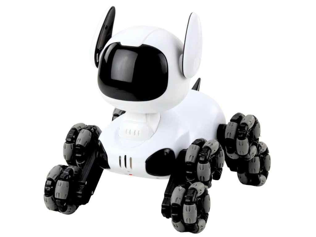 Interaktivní Robotický Pes TOOBY RC 360° s LED a Zvuky - Bílý/Černý Design