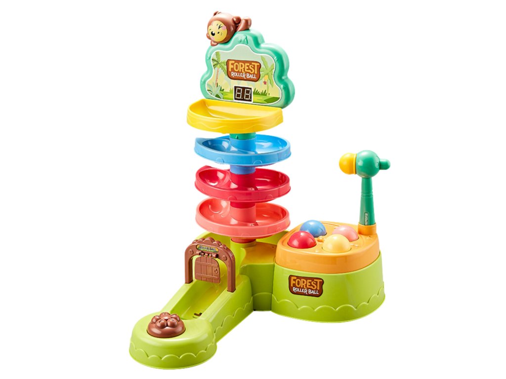 shazování kuliček kladívkem, strefování do obruče a sledování trasy padajících kuliček, což rozvíjí dítě jak po fyzické, tak mentální stránce Všechny součásti hračky jsou vyrobeny z bezpečných, barevných a odolných materiálů, které přitahují pozornost a povzbuzují ke hře