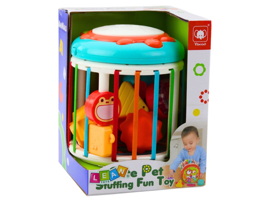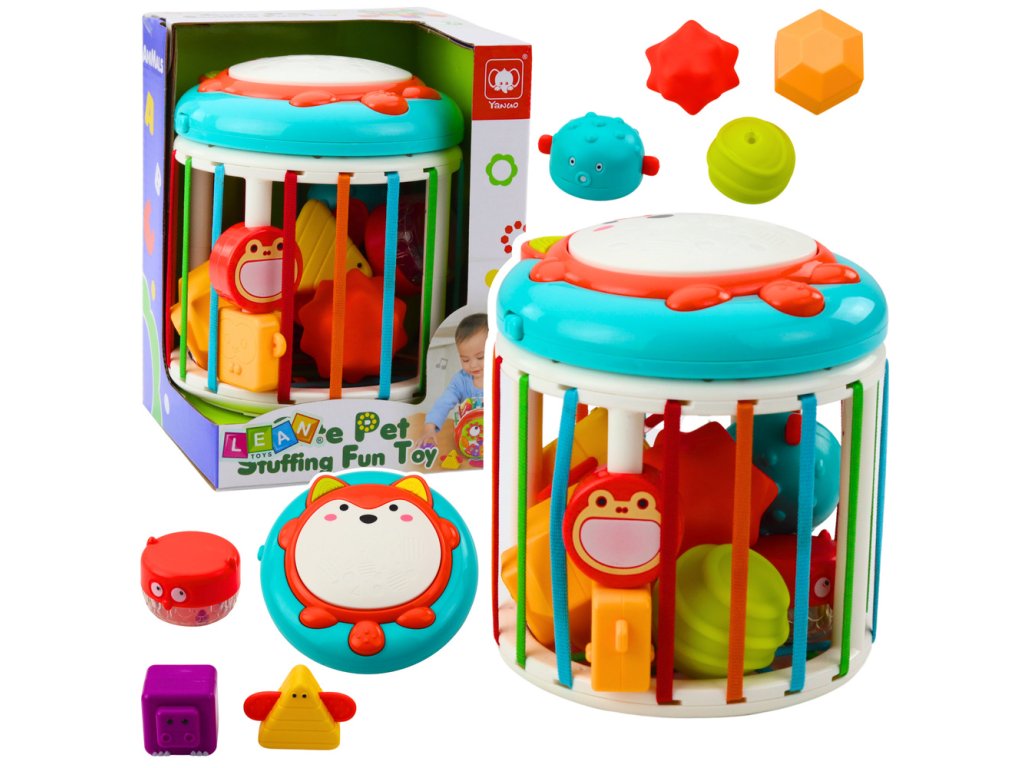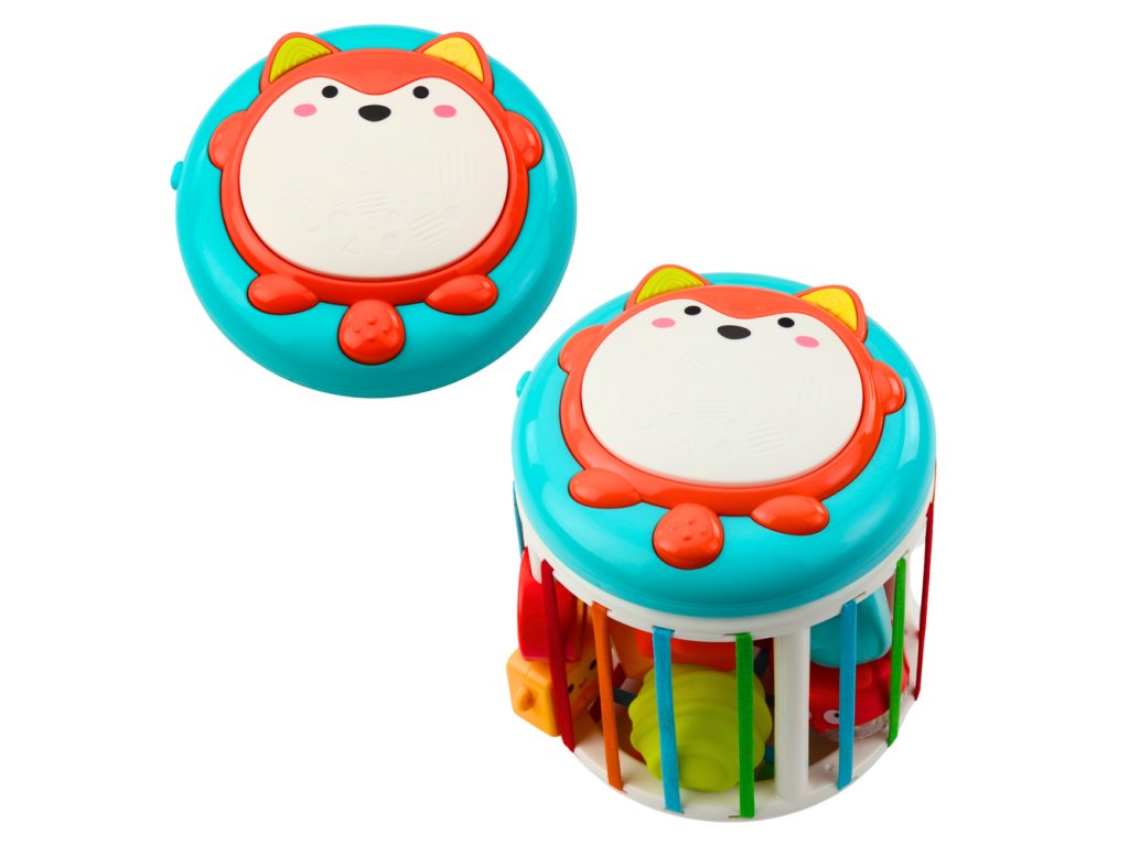Interaktivní senzorická kostka s bubínkem liška, světla a zvuky barevná