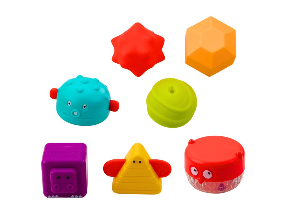 Kostka obsahuje množství interaktivních prvků: Sorter tvarů