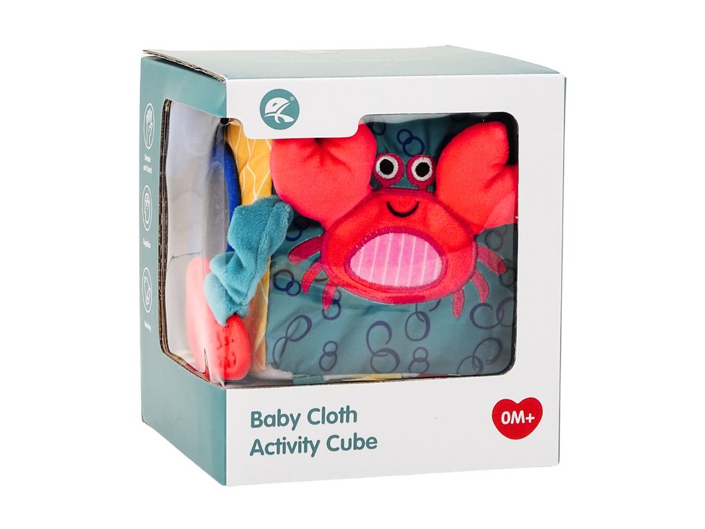Kostka je vybavena dvěma šňůrkami, z nichž jedna je zakončena kroužkem, umožňujícím připevnění ke kočárku nebo autosedačce, což činí hračku ideální pro cestování. Šňůrky vybízejí ke hraní a rozvíjejí koordinaci. Na povrchu kostky jsou také šustivé prvky, které při dotyku vydávají stimulující zvuky, které děti nutí ke zkoumání sluchových podnětů.