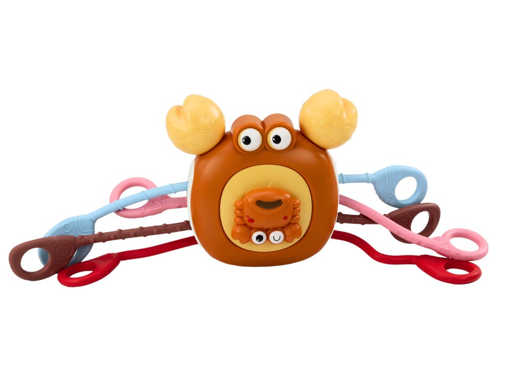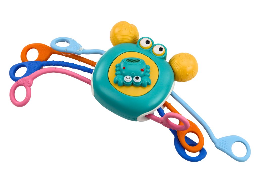 - Měkké silikonové paže kraba jsou nejen bezpečné na kousání, ale také ideální pro uchopení malými ručkami, což napomáhá rozvoji koordinace a manuálních schopností dítěte