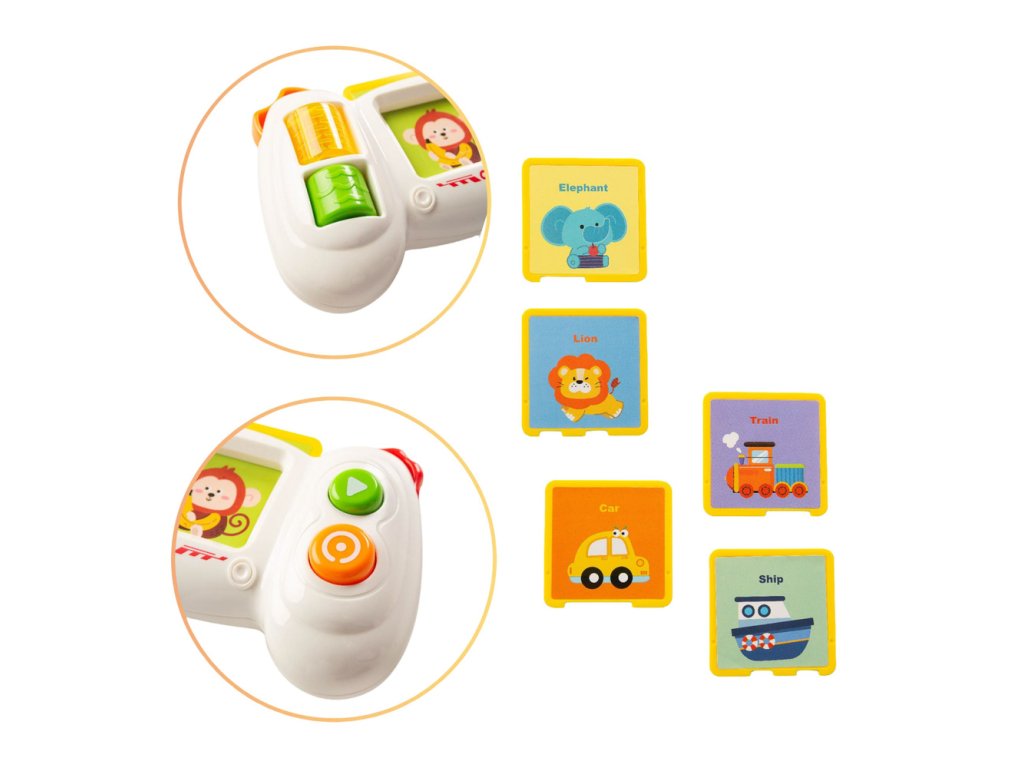 - Navržena pro děti od 18 měsíců, spojuje zvukové a světelné efekty s edukativními kartami, které učí rozpoznávat zvířata, vozidla a další předměty