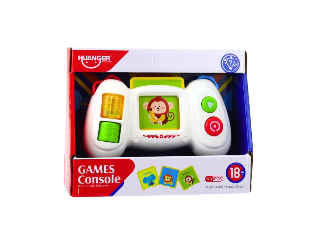 Interaktivní herní konzole pro děti s kartami, světlo a zvuk je vzdělávací hračka vytvořená s ohledem na nejmenší děti již od 18 měsíců věku Díky vestavěným zvukům a melodiím se dítě učí rozpoznávat zvuky, rozvíjí sluchovou citlivost a smysl pro rytmus