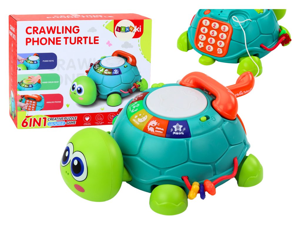 - Interaktivní vzdělávací želva Telefon 6v1 Světla Zvuky Zelená Želva Telefon 6v1 je velmi pokročilá a interaktivní hračka, vytvořená s cílem podnítit představivost a podpořit rozvoj dítěte na mnoha úrovních