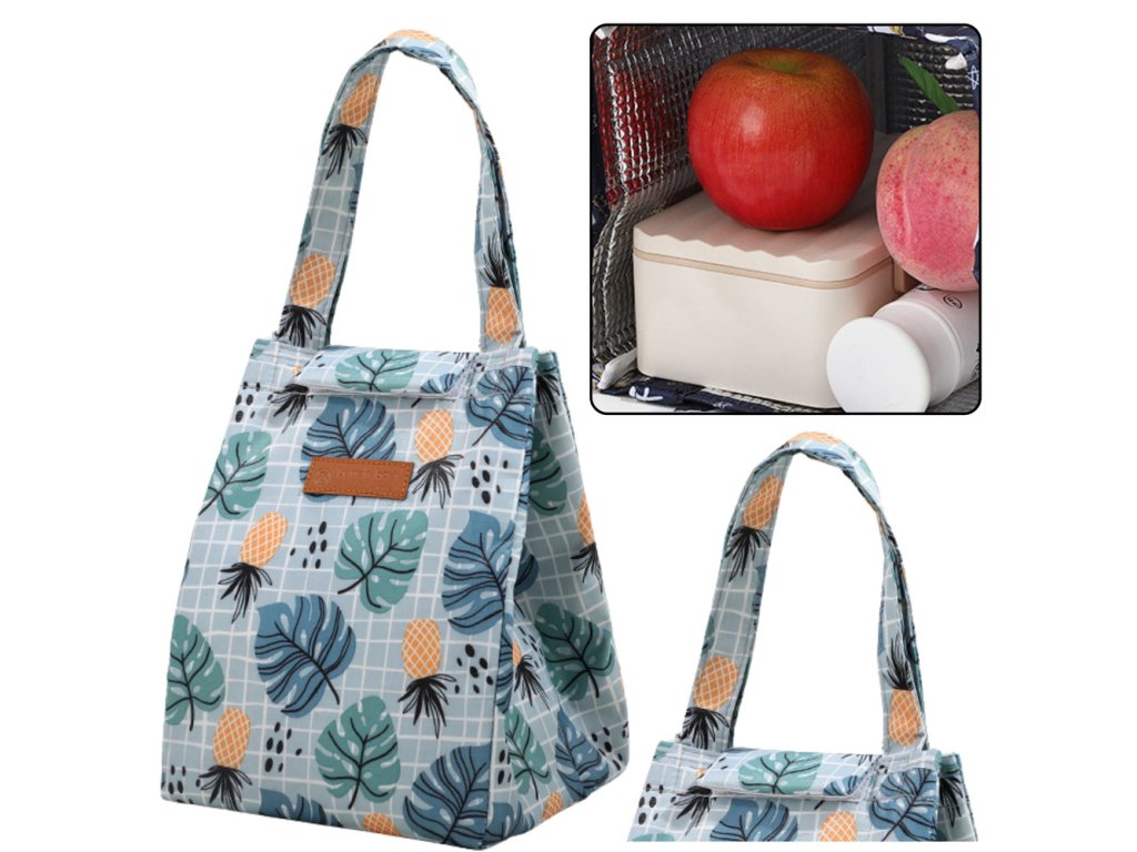 - Izolační termotaška na obědy s motivem listů a ananasů je ideální volbou pro každého, kdo chce vzít s sebou čerstvé jídlo do práce, školy nebo na piknik
