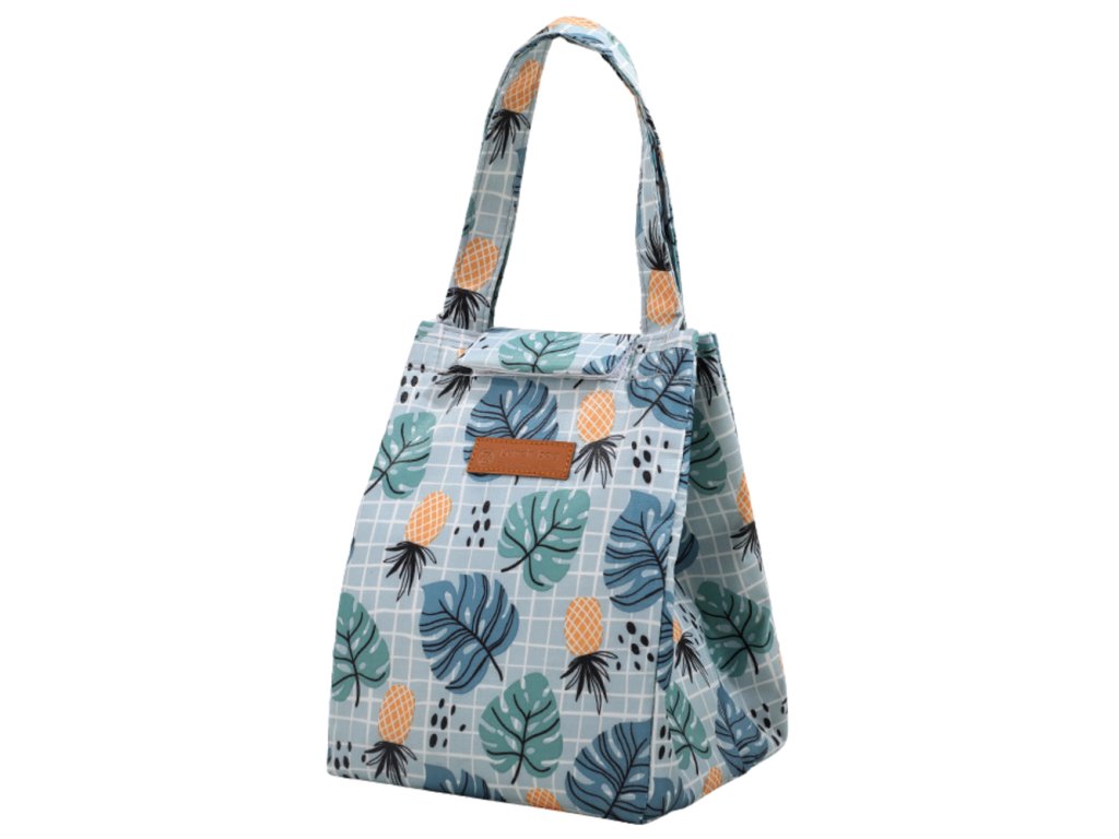 Izolační termotaška na obědy s motivem listů a ananasů je ideální volbou pro každého, kdo chce vzít s sebou čerstvé jídlo do práce, školy nebo na piknik Její originální design s motivem listů a ananasů na světlém pozadí dodává lehký, letní charakter, zatímco kompaktní a elegantní tvar dodává tašce výjimečnou atraktivitu, aniž by ztratila svou funkčnost