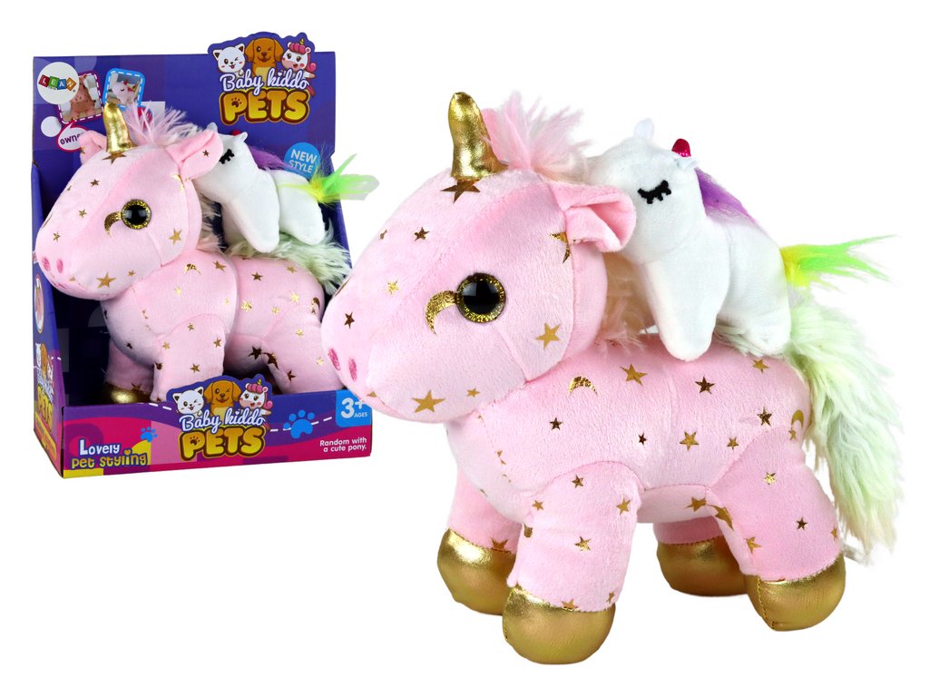 - Skvělý dekorační doplněk: Díky růžové hřívě a zlatým hvězdičkám se perfektně hodí do každého pokojíčku
