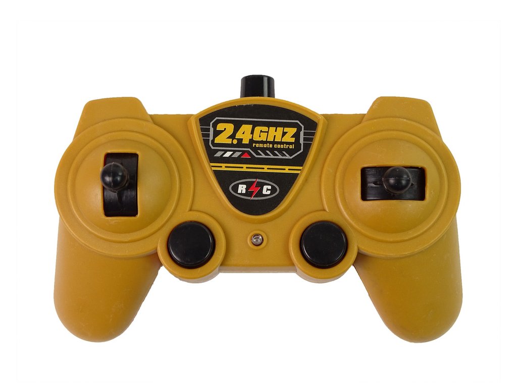 - Ovládání se provádí pomocí dálkového ovladače pracujícího na frekvenci 2,4 GHz, který zajišťuje stabilní spojení a přesné pohyby