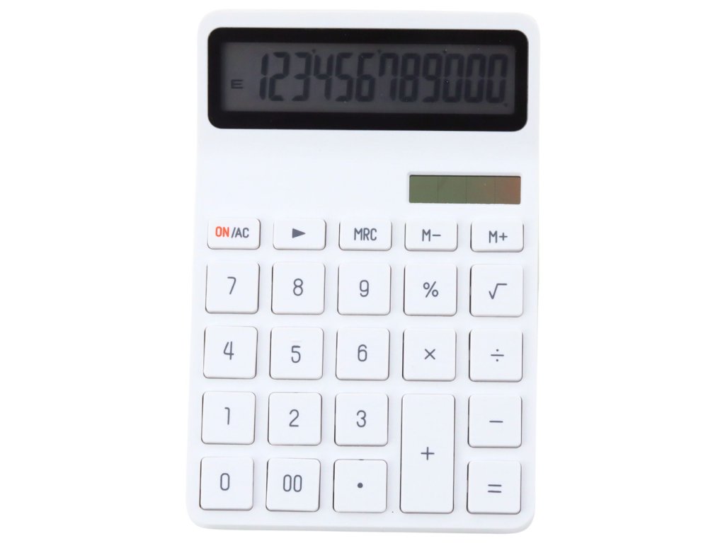 - S elegantním bílým designem, který zaujme na každém stole, splňuje tato kalkulačka i ty nejnáročnější požadavky na styl a funkčnost