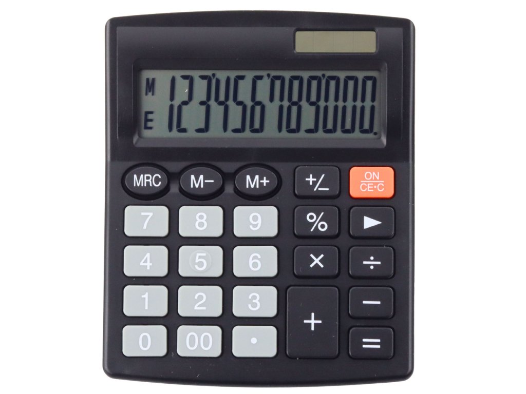 Kancelářská a školní klasická kalkulačka v elegantním černém provedení je spolehlivým nástrojem pro každodenní výpočty doma, ve škole či v kanceláři Díky velkému, dobře čitelnému displeji a pohodlným tlačítkům umožňuje rychlé a komfortní provádění matematických úkonů
