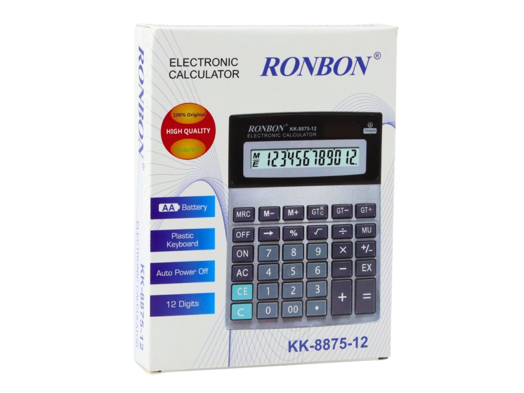 - Kancelářská kalkulačka Ronbon KK-8875-12 je spolehlivé a funkční zařízení, které se dokonale hodí do kanceláře, školy i pro každodenní domácí použití