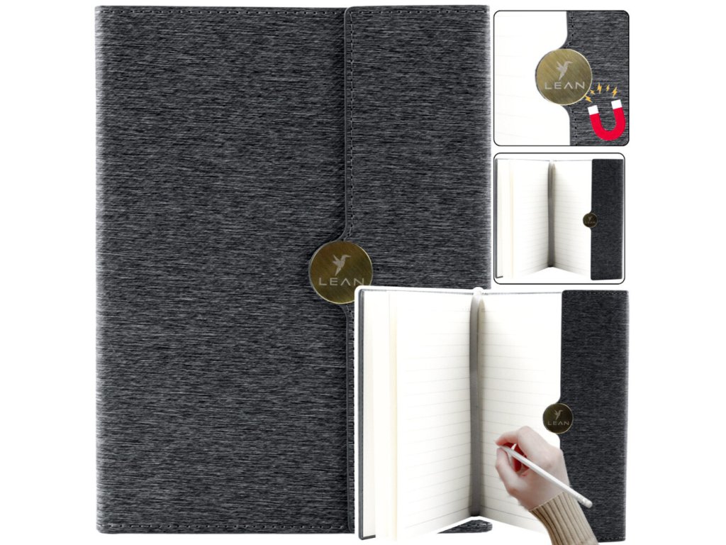 - Pevné zámky na magnet: Zajišťují, že poznámkový blok zůstane uzavřený a chrání obsah před nechtěným otevřením