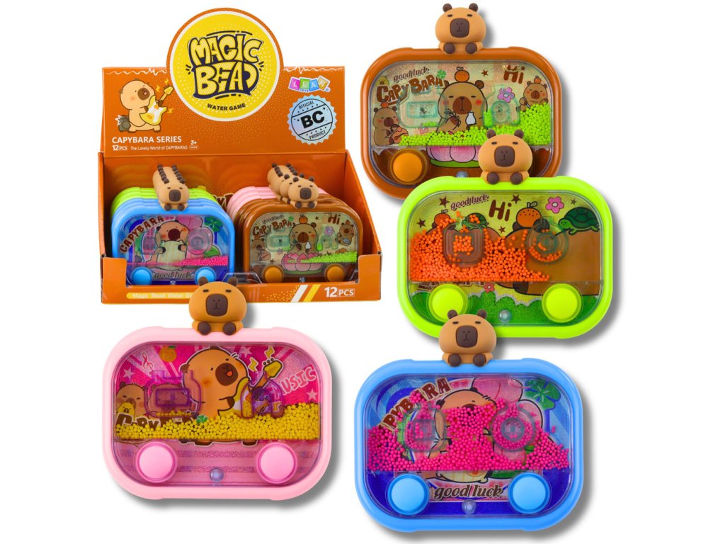 Představujeme vám unikátní vodní hru s kapibarou, která zaručí zábavu na celé hodiny pro děti všech věkových kategorií! Tato zručnostní hra kombinuje tradiční herní mechaniky s moderním designem a světelnými efekty. Vaším cílem je stisknutím tlačítek rozhýbat vodu a dostat malé kuličky do nádrží v průhledném pouzdře.