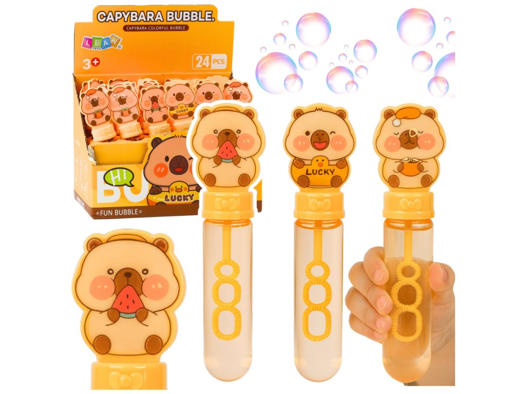 Baňky mydlane Kapibara jsou perfektní hračkou, která přináší hodiny zábavy pro děti jak na čerstvém vzduchu, tak i v interiéru. S objemem 35 ml tento výrobek zaručuje tvorbu dlouhotrvajících, velkých a barevných bublin, které nadchnou každého malého dobrodruha. Jedinečný design s rozkošnou kapibarou na víčku upoutá pozornost a odliší se tak od ostatních běžných sad bublin.