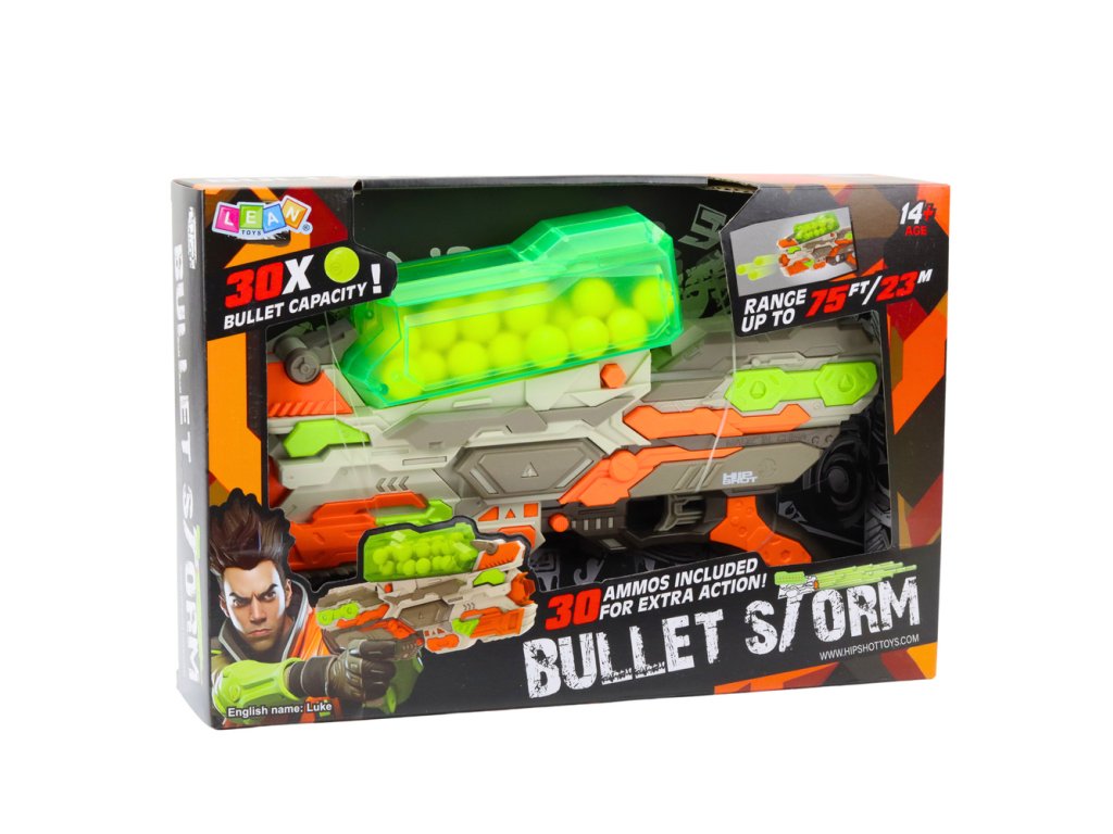 - Pistole na měkké pěnové kuličky Bullet Storm je dynamická střelecká hračka navržená pro starší děti a mladistvé, kteří hledají vzrušující zábavu