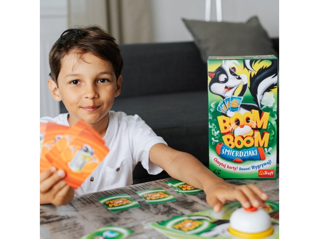 Karetní hra Boom Boom – Smraďoši Trefl 01910 je rodinná hra pro děti od 6 let, která nabízí šíleně rychlou a zábavnou karetní akci.