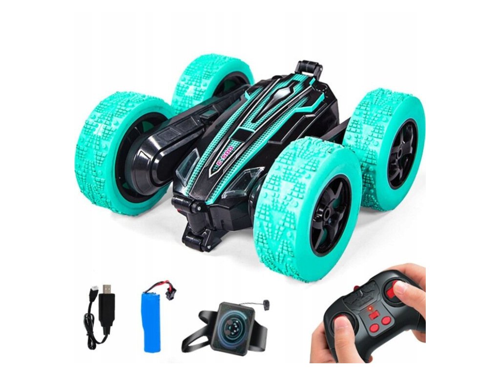 - zdalnie sterowany samochód akrobatyczny z pilotem i kontrolerem gestów, w niebieskim kolorze