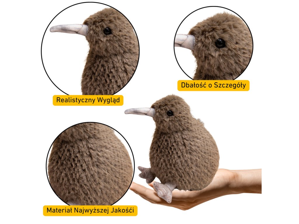 - Představujeme plyšovou hračku ptáka kiwi o výšce 21 cm, která věrně zachycuje charakteristické tmavohnědé peří tohoto unikátního ptáka