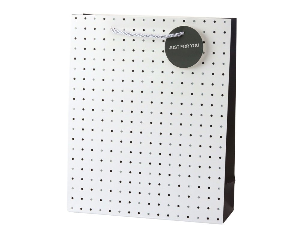 Klasická Dárková Taška s Puntíky a Závěskou "Just For You" 32 x 26 x 10 cm