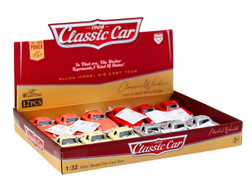 - Samochód Klasyczny 1:32 je kovový model vozu v měřítku 1:32, ideální pro milovníky automobilismu s retro duchem