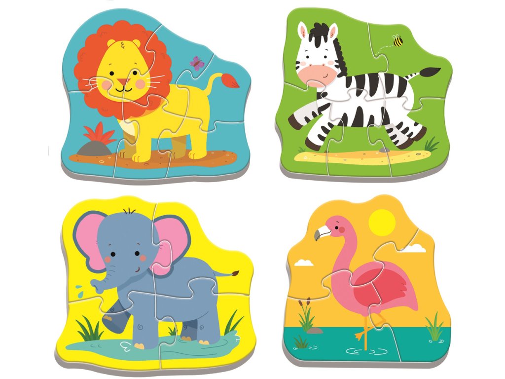Klasické dětské puzzle Safari zvířátka jsou velké skládačky vyrobené z pevného kartonu, určené pro nejmenší děti