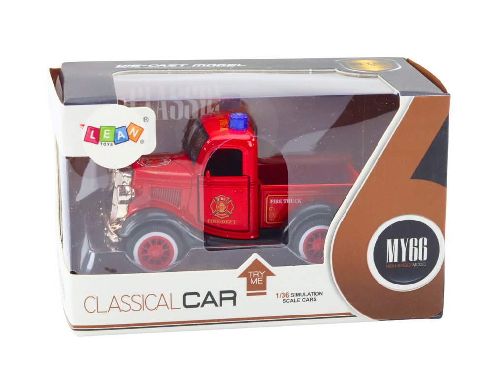 Klasické Hasičské Auto 1:36 Pohon Světla Zvuky Červené