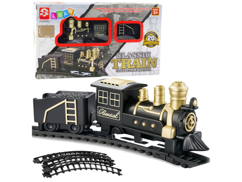 Objevte kouzlo klasického železničního světa s naším unikátním setem vláčků, který je ideální pro malé milovníky železnic. Tento klasický dětský vlakový set zaujme svým designem inspirovaným historickými parními lokomotivami a je detailně zpracován tak, aby působil elegantním a realistickým dojmem. Zahrnuje lokomotivu, nákladní vagón a celý komplet kolejí, které lze sestavit do stabilního, eliptického okruhu.