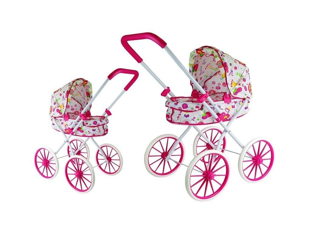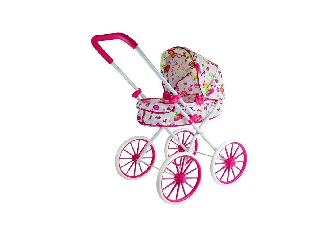 Kočárek pro panenky s květinovým vzorem Fantastický, velký, obratný kočárek pro nejmenší holčičky Moderní, příjemný design jistě potěší každou malou pečovatelku o panenky, medvídky a další plyšáky