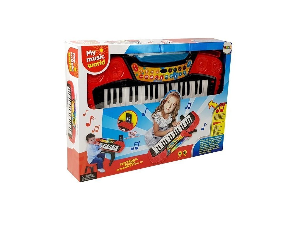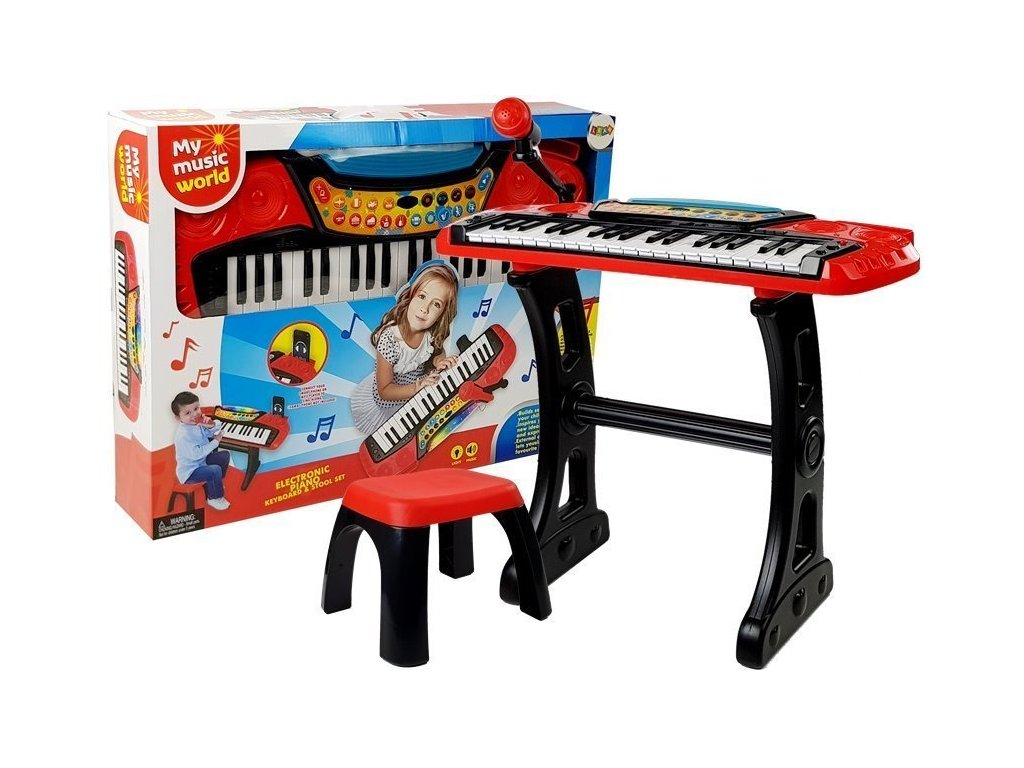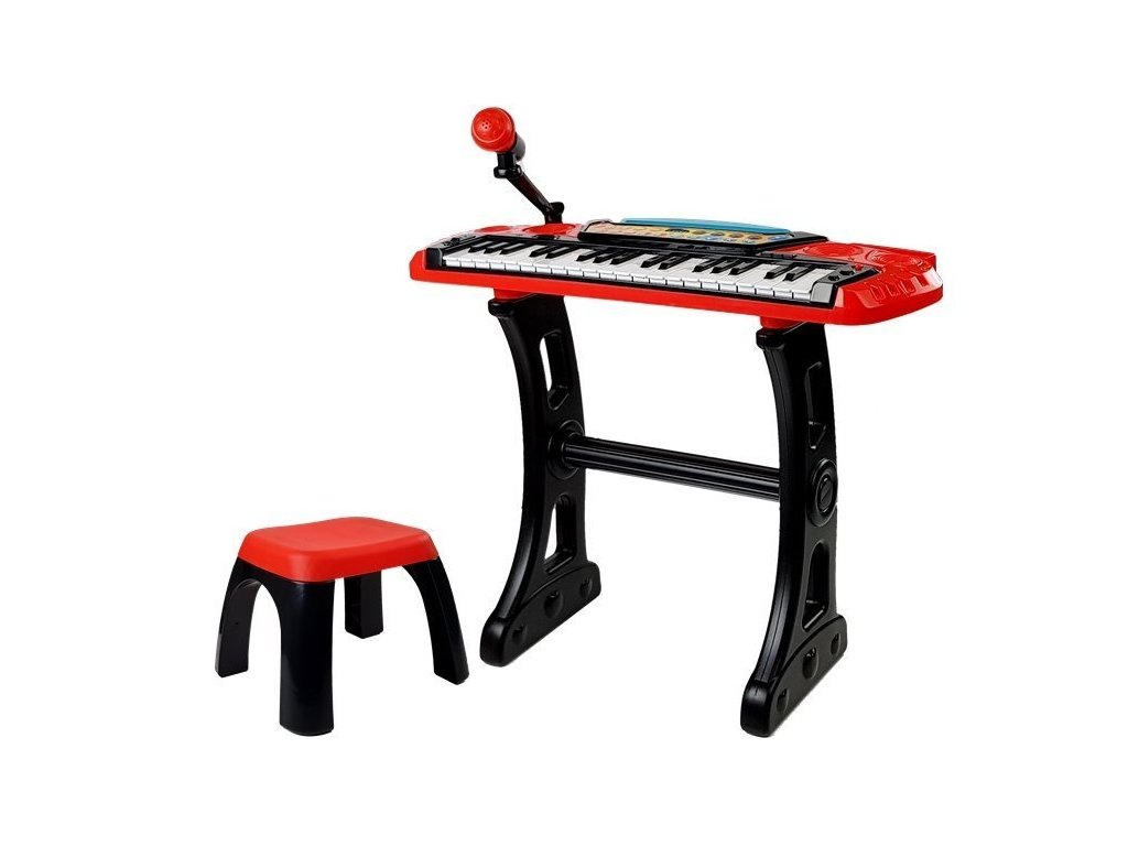 Klávesnice se Stojanem a Stoličkou 37 Kláves Červená je ideální hračkou pro vašeho malého hudebníka Pomůže mu rozvinout smysl pro sluch a rytmus, a kdo ví, možná jej inspiruje k tvorbě vlastních písní a rozvoji jeho vášně