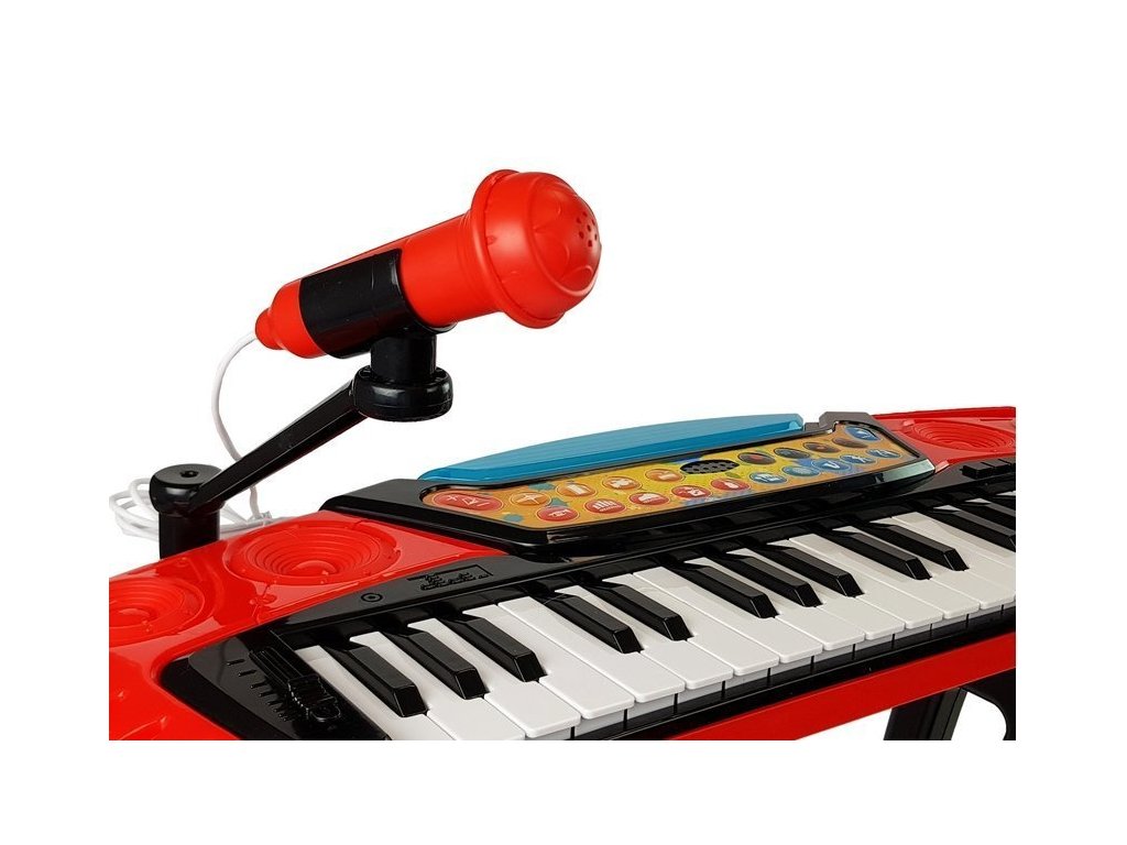 Součástí sady je i mikrofon s upevněním, díky kterému může vaše dítě zpívat a hrát zároveň Klávesnice má zásuvku pro externí MP3 přehrávač