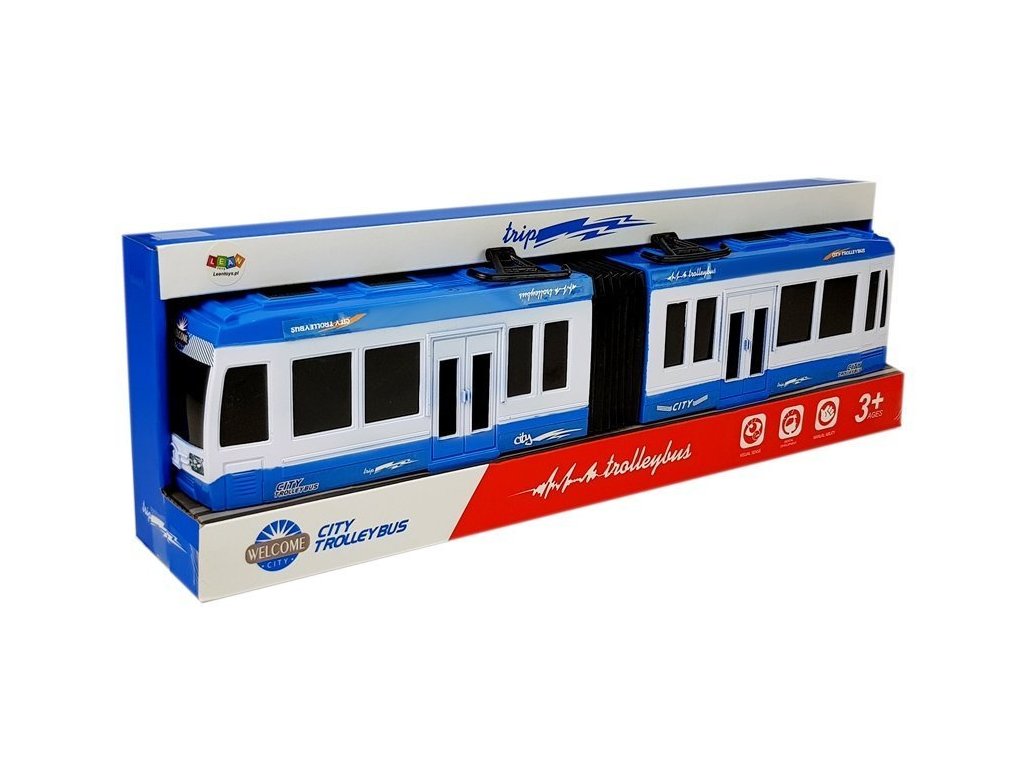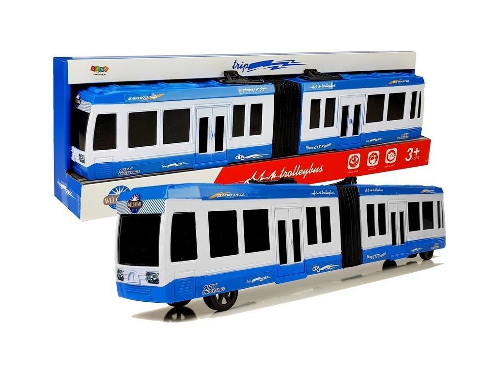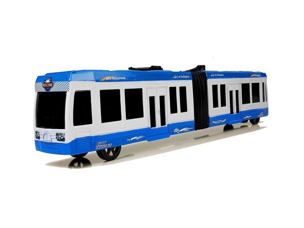 - Kloubový autobus s frikčním pohonem, modrý Autobus je multifunkční hračka, která rozvíjí motorickou koordinaci a obratnost malých dětí