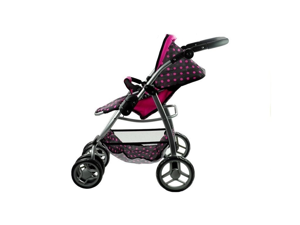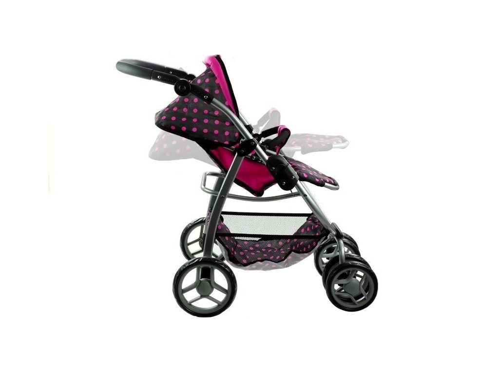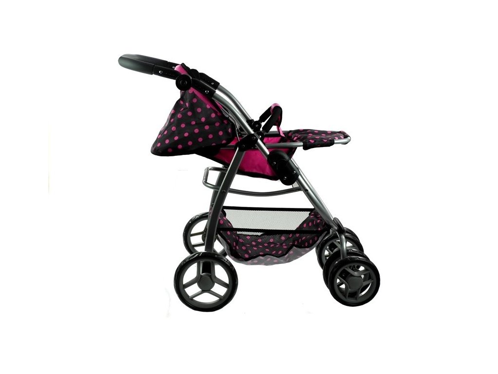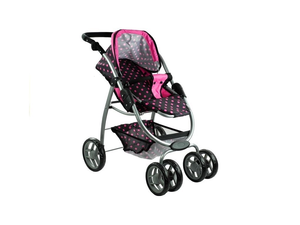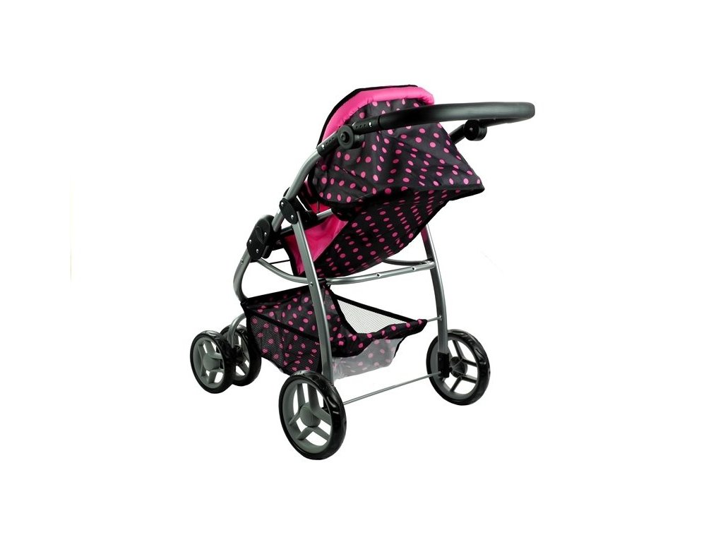 Multifunkční kočárek pro panenky Alice černý s růžovými puntíky Velká část několik let starých holčiček miluje kočárky, které jim umožňují hrát si na své milující a starostlivé maminky