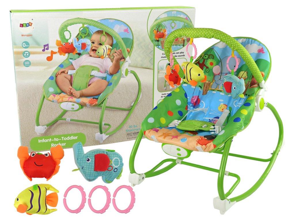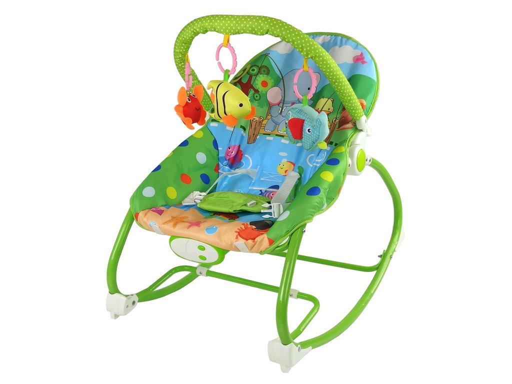 Kolébka Houpací Křesílko 2v1 Zelená Rybička Slon Zvuky Vibrace