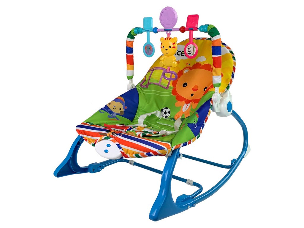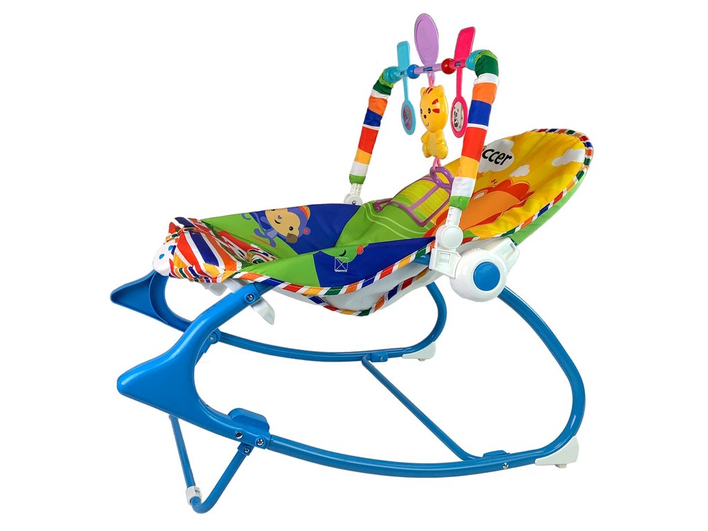 Kolébka Houpačka Židlička Křesílko 2v1 Modrý Tygr Zvuky Vibrace