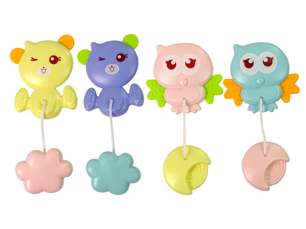 - Závěsy a kousátka: Barevní ptáčci a medvídci stimulují zvědavost a dotek dítěte