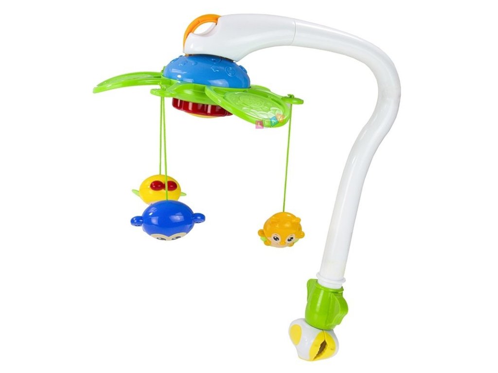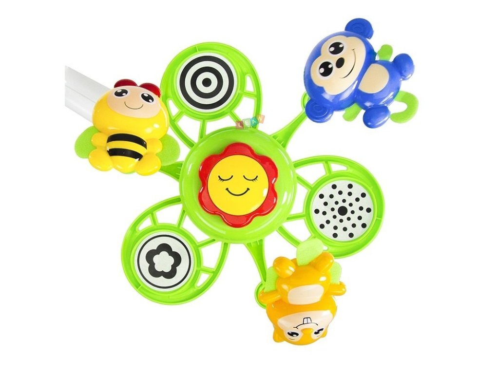 - S krásnými barevnými přívěsky jako opička, veverka a včelka, upoutá pozornost malého průzkumníka a rozvíjí jeho zrakovou koordinaci