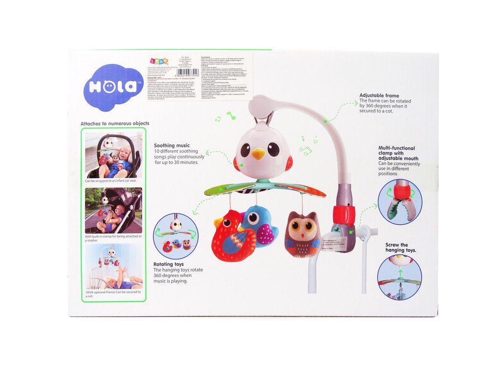 - Rotace o 360 stupňů poskytuje působivý vizuální zážitek a podporuje **rozvoj koordinace** Nejenže **uklidní vaše dítě ke spánku**, ale také zábavou **obohatí chvíle** strávené v postýlce či kočárku