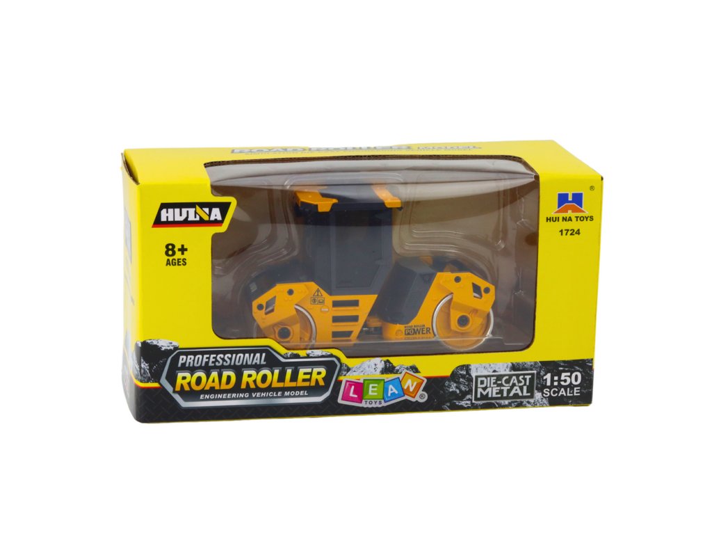 Kompaktní Silniční Válec Kovový Stavební Vozidlo Huina Žlutý 1:50