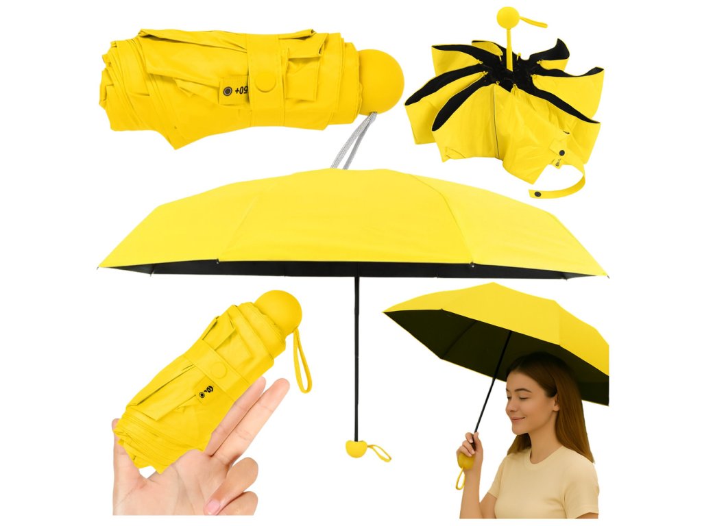 Kompaktní skládací deštník s UV ochranou UPF 50+, žlutý, 90 cm, etui