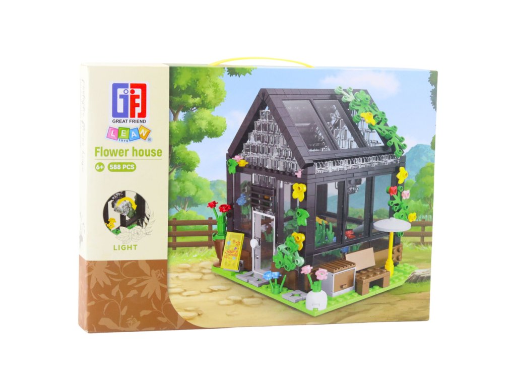 - KVĚTINOVÝ DŮM Z KOSTEK 588 KUSŮ Sada konstrukčních kostek Skleník je jedinečnou nabídkou pro milovníky přírody, kostek a dekorativních staveb